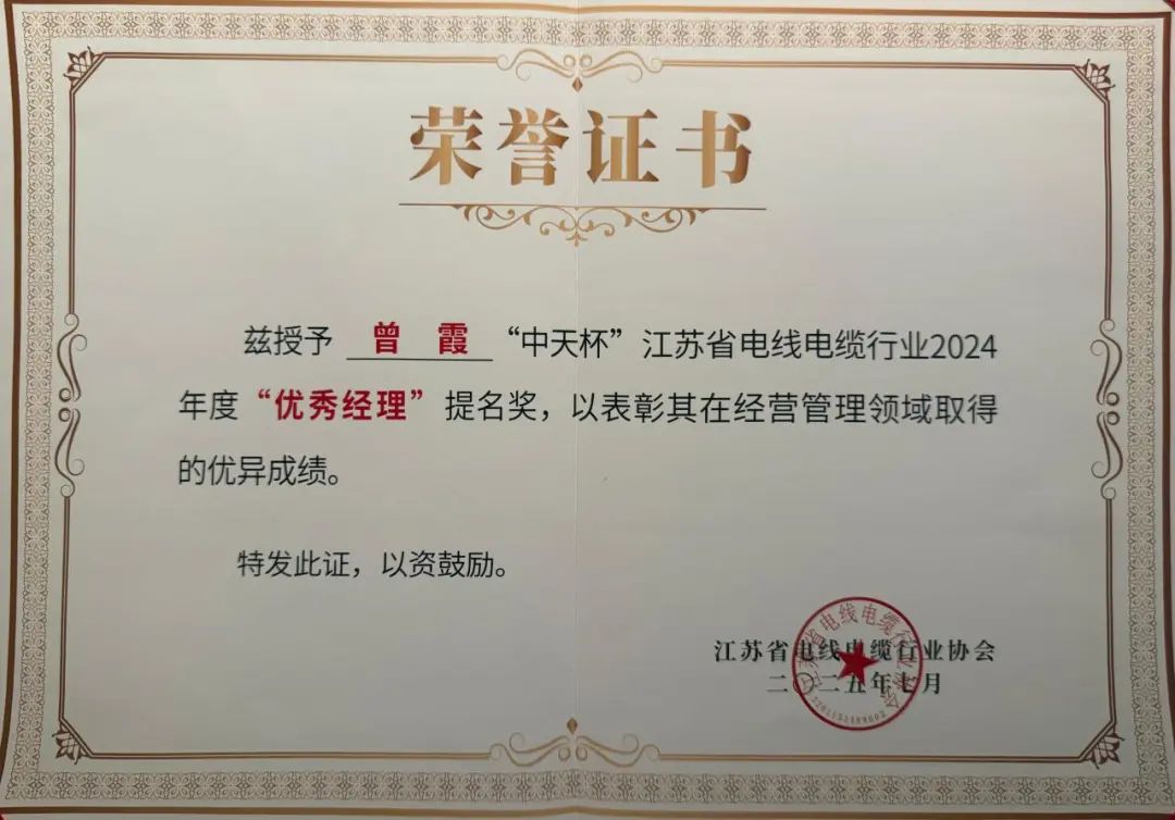 江苏省电线电缆行业2024年度“优秀经理”提名奖