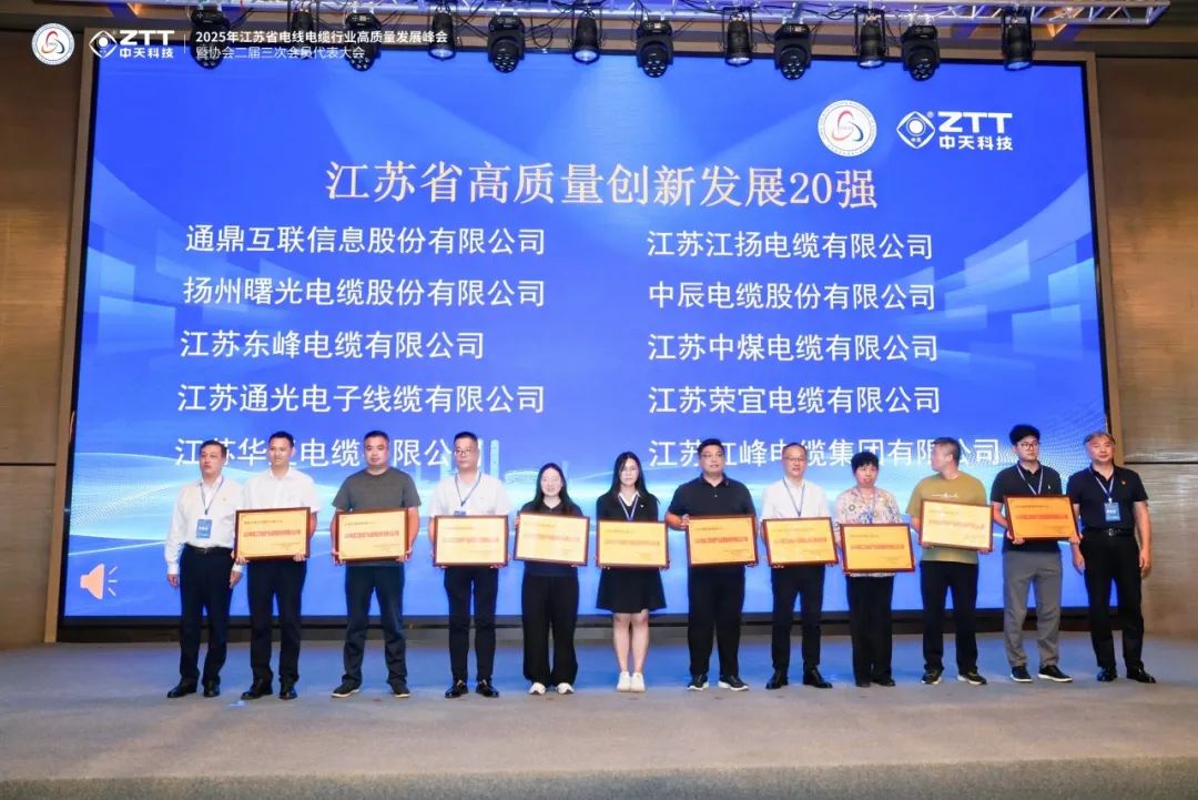 此次评选,协会聚焦“高质量”核心维度,评审标准涵盖营收规模、创新能力、技术工艺先进性、产品质量可靠性、品牌影响力、绿色制造水平、智能化程度以及社会贡献等关键指标。评选过程科学严谨,中辰电缆此次成功登榜“江苏省高质量创新发展20强”,是长期坚持高质量发展战略结出的硕果,也是公司在创新技术、品质为本、智造升级、绿色低碳、责任担当、深耕市场板块迈步向前的重要体现。