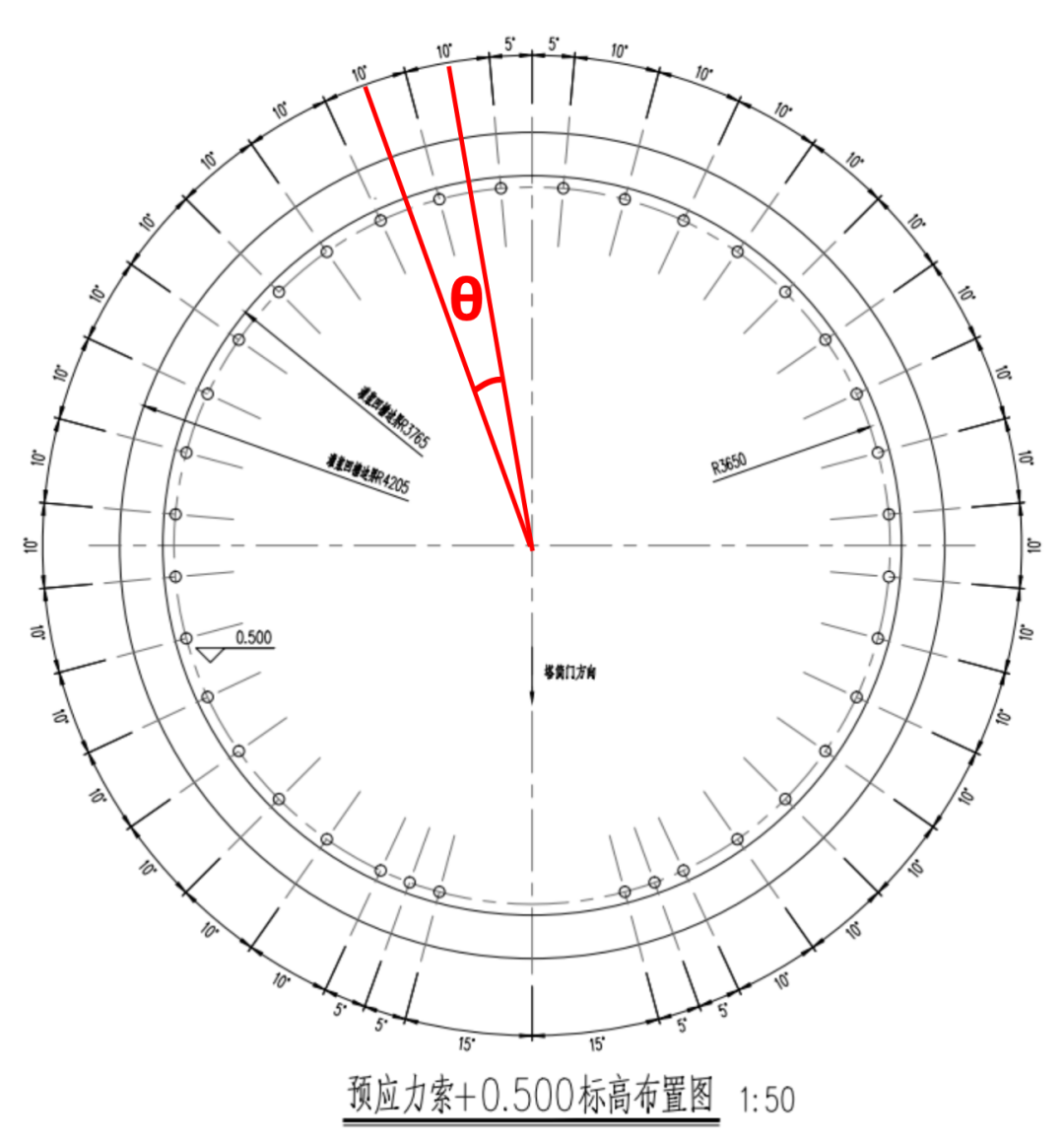 其中,锚索等分的角度为θ=360°/N,N为锚索数量。如下图。
