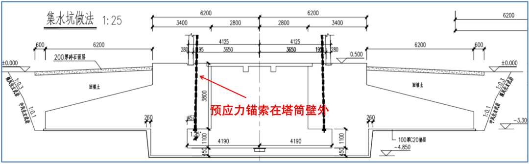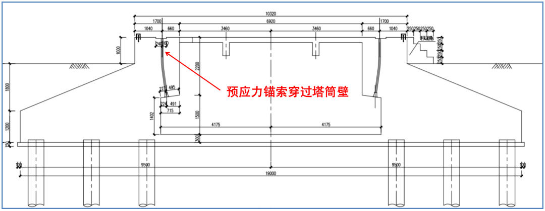 混塔基础中预应力锚索是张拉混凝土塔筒的,同时也把塔筒和基础固定、连接在一起。