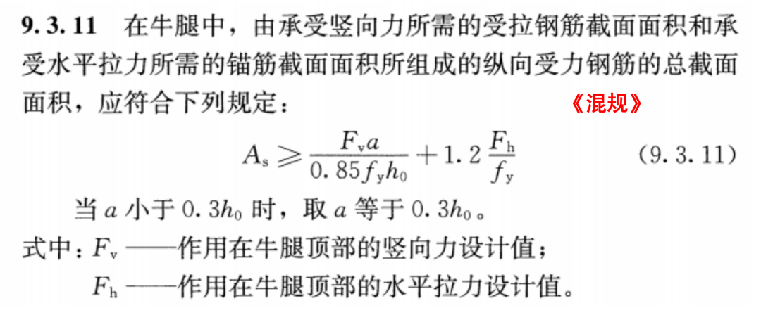 牛腿在竖向力和水平力作用下,按《混规》9.3.11条计算牛腿的纵向受力钢筋。