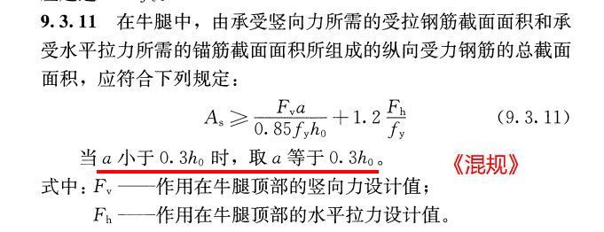 根据《混规》9.3.11条,牛腿纵向受力钢筋总面积为竖向力所需的受拉钢筋截面面积As1和承受水平拉力所需的锚筋截面面积As2之和,即: