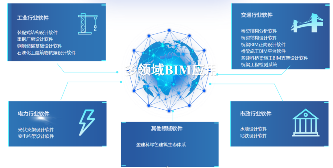 若说统一技术基座与专业工具矩阵是盈建科 BIM 的“内功根基”,那么面向多行业的场景化延伸与生态构建,则是其打破国外软件垄断、加速国产替代的“外功拳脚”。依托 BIMFire 数字化平台的底层能力复用与跨场景适配优势,盈建科 BIM 已不再局限于建筑工程领域,而是成功将技术能力辐射至交通、工业、电力、市政、铁路、化工等多元赛道,通过提供定制化的专业工具软件与全生命周期解决方案,持续完善国产 BIM 软件的产业生态版图。