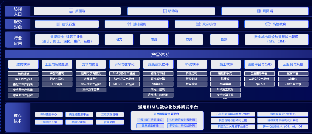 从单一建筑领域到多行业全面覆盖,从满足国内需求到适配国际标准,盈建科 BIM 以 BIMFire 平台为核心纽带,正逐步构建起一个覆盖“设计-施工-运维”全周期、横跨多行业的国产 BIM 软件生态。这种生态化的布局,不仅进一步巩固了其在国产替代中的领先地位,更推动着整个行业从依赖国外软件的“被动跟随”,迈向自主可控、多元赋能的“主动引领”新阶段。