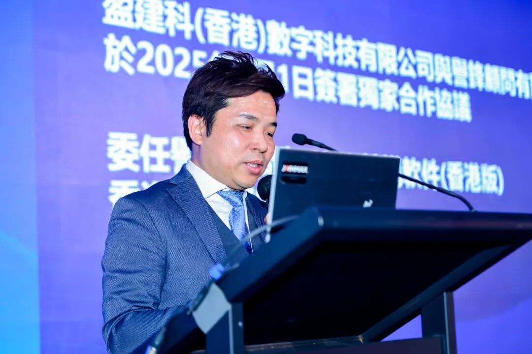 盈建科 董事长陈岱林发表《携手共进,谱写新篇章》主题致辞。他表示,当前香港建造业正加速拥抱数字化变革,向智慧建造、绿色建造深度转型。 盈建科 紧抓这一战略契机,以十余年行业技术积淀为底座,深化AI与建筑全流程的融合赋能,精准适配香港建筑规范标准,致力于为本地建造业提供更高效、更智能的数字化解决方案。同时, 盈建科 将依托香港的国际化平台优势,融合内地成熟实践与香港先进标准,稳步构建“以香港为枢纽,辐射全球市场”的发展格局。