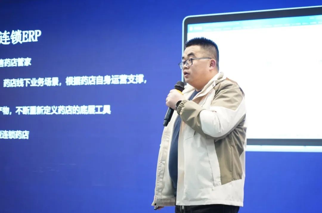 集团技术研发中心运维实施部机构负责人文渊对“药易宝零售连锁ERP”进行了详细介绍。他提到,药易宝作为面向医药零售终端的数智管理软件,能够覆盖采购、零售、配送、运营、会员及财务等多种运营领域与应用场景。同时还引入了大数据AI对店铺核心指标进行数据分析,通过业绩、商品、会员、店员等维度与同类型店铺进行分析对比,诊断差异形成具有决策意义的门店诊断报告,助力门店实现高效可持续的运营。