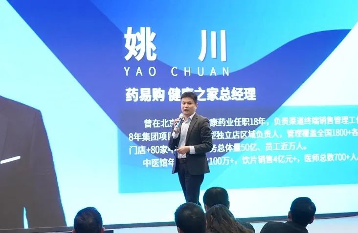 药易购健康之家总经理姚川在主题演讲中表示,在政策和市场的助推下,药店连锁化和品牌化是大势所趋。而面对中小型连锁药店、单体药店生存艰难的现实,药易购探索运用全新的加盟制度,聚焦行业资源、品牌力、产品力、运营能力和技术能力的投入和提升,以商品赋能、运营赋能、后端支持、供应链赋能、质量赋能、销售赋能为核心,帮助加盟商降低经营成本,提高门店利用率,帮助门店拓客创收,更好的服务消费者。