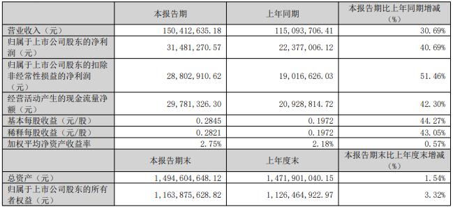 信测标准2023年第一季度报告显示,2023年一季度,信测标准实现营业收入1.50亿元,同比增长30.69%;归属于上市公司股东的净利润3148.13万元,同比增长40.69%;归属于上市公司股东的扣除非经常性损益的净利润2880.29万元,同比增长51.46%;经营活动产生的现金流量净额2978.13万元,同比增长42.30%。