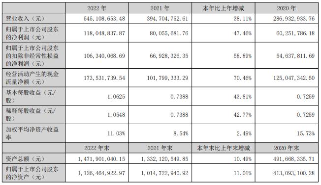 信测标准2022年年度报告显示,2022年,信测标准实现营业收入5.45亿元,同比增长38.11%;归属于上市公司股东的净利润1.18亿元,同比增长47.46%;归属于上市公司股东的扣除非经常性损益的净利润1.06亿元,同比增长58.89%;经营活动产生的现金流量净额1.74亿元,同比增长70.46%。
