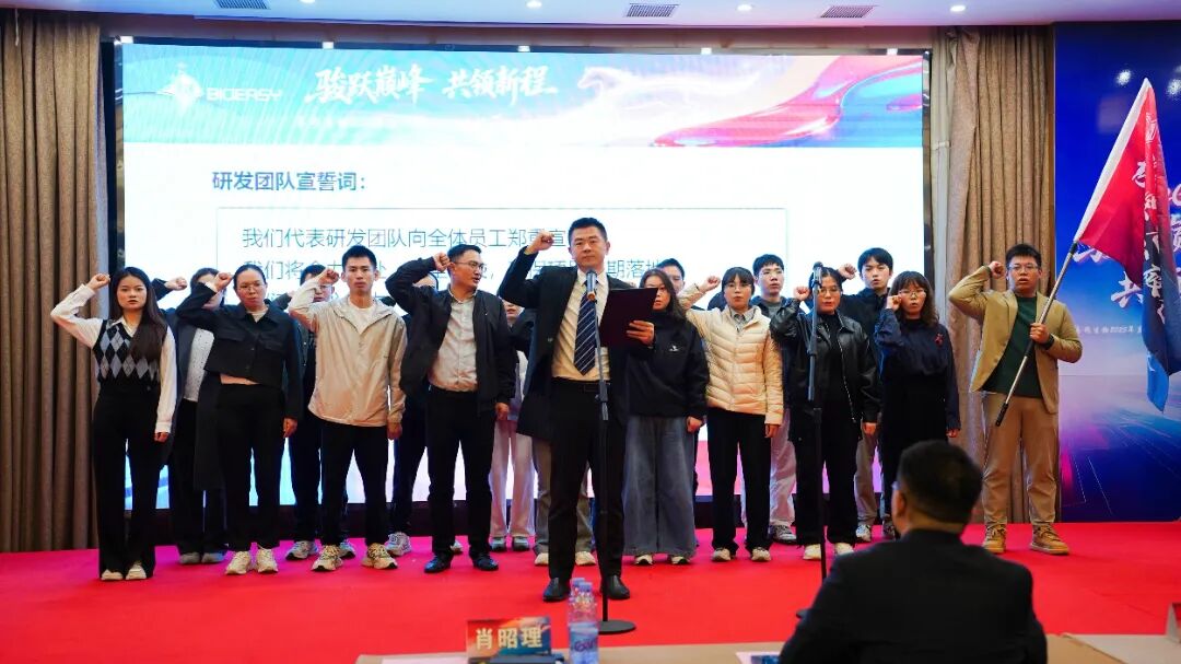 紧接着,大会迎来气势如虹的“核心团队宣誓授旗”仪式。公司三大业务支柱团队整齐列阵,面向司旗,发出铿锵誓言:研发团队宣誓以技术立身,勇闯创新深水区,为公司发展筑牢根基。销售冲锋队宣誓以客户为先,决胜市场最前沿,为业绩增长开疆拓土。供应链质量护航队宣誓以质量为生命,精益运营全过程,为卓越交付坚守防线。
