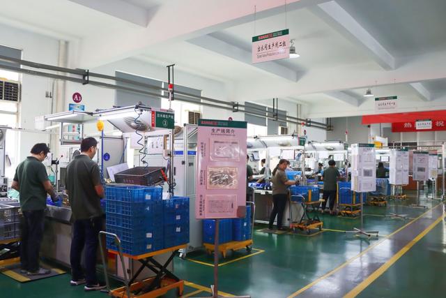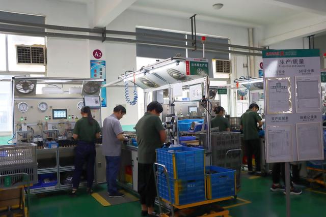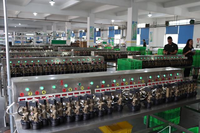 水路生产车间:主要从事供热燃气壁挂炉水路产品的研发与制造。目前车间主要分为水路阀组生产和水路产品核心部件生产,共有生产流水线8条,其中预留了2条为手工线,可同时满足不同产品小批量、多规格的生产需求,日产能最高可达12000套。值得一提的是,春晖内部设置了设备改造部门,自制部分组装设备,员工也会围绕自制或整改的设备提出精益生产改善提案,其中车间内的“小黄车”就是员工自主提出、制造的,可减轻员工搬运货物负担。