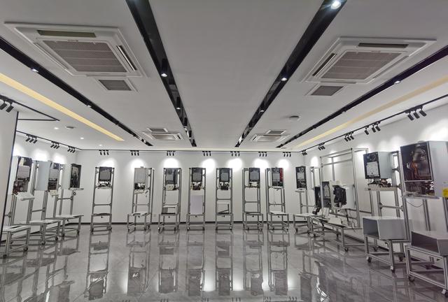 综合供热应用中心:该应用中心是春晖智控供热科技团队在原实验室的基础上增建的,先后投资了800万元。该应用中心涵盖当前所有主流及非主流室内环境冷暖及健康系统应用技术,包括各类热泵、壁挂炉测试及检测平台、采暖高低温试验台、卫浴高温低温试验台、水泵高低温耐久试验台、采暖脏水试验台、多能源实验室、静音实验室;天棚辐射冷暖、地板辐射冷暖、全空气冷暖技术等;全系统采用BIM技术正向设计;管综裸装呈现完美工艺。