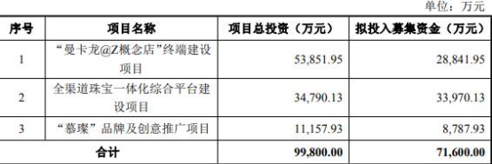 本次向特定对象发行股票拟募集资金总额不超过7.16亿元(含本数),扣除发行费用后的募集资金净额拟分别投资于“曼卡龙@Z概念店”终端建设项目、全渠道珠宝一体化综合平台建设项目、“慕璨”品牌及创意推广项目。