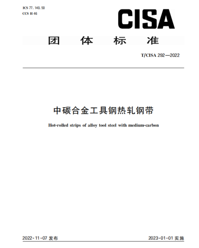 近日,由我司参与起草的《中碳合金工具钢热轧钢带》(编号:T/CISA29-2022)团体标准正式出版,该标准经专业标准化技术专家审定通过,并经全国钢标准化技术委员会审查,2023年1月1日便已开始实施。