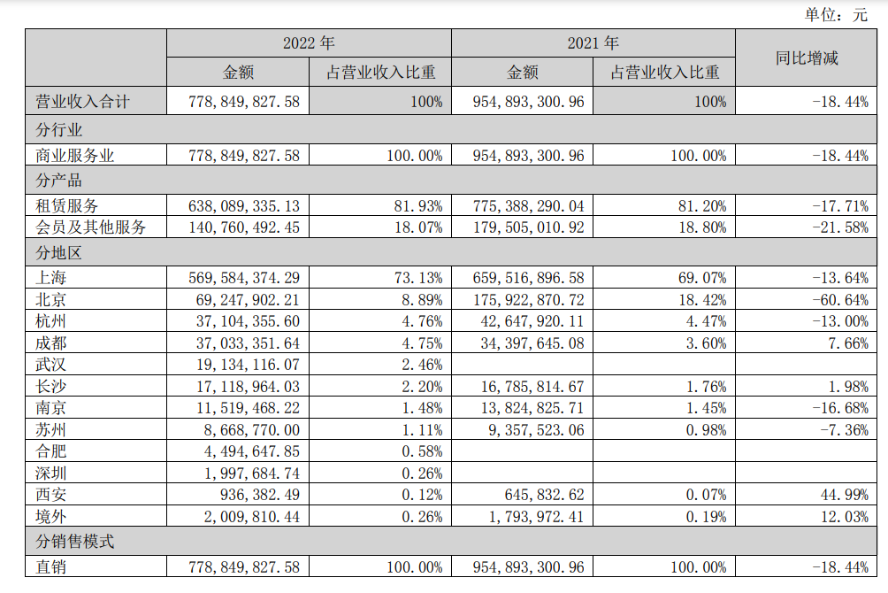 分地区来看,上海、北京、杭州、南京、苏州地区营收同比下滑。其中,北京地区营收6924.79万元,同比降60.64%;南京地区营收1151.95万元,同比降16.68%;上海地区营业收入5.7亿元,同比降13.64%。