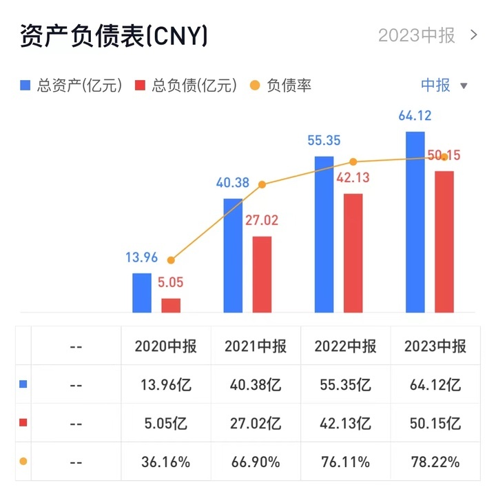 负债率方面,2023上半年,德必集团负债率为78.22%,为近四年最高。2020上半年、2021上半年、2022上半年,德必集团负债率分别为36.16%、66.90%、76.11%。