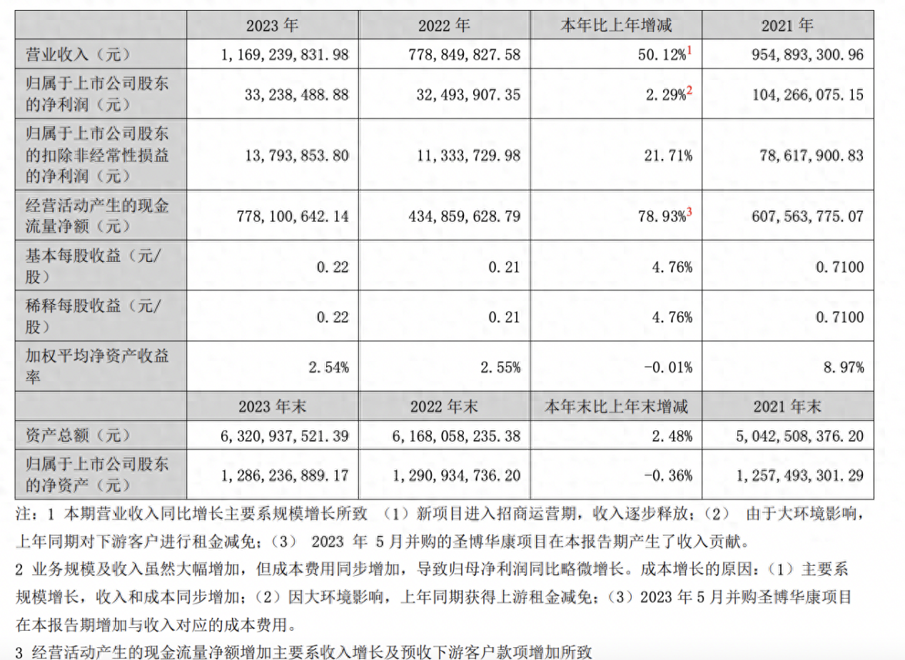 报告期内,德必集团实现营业总收入11.69亿元,较去年同期上升50.12%,主要系新项目进入招商运营期收入逐步释放及2023年5月圣博华康纳入公司合并范围产生收入贡献所致;归属于上市公司股东的净利润为3323.85万元,较去年同期提升2.29%;毛利率为33.04%,去年同期为41.5%。