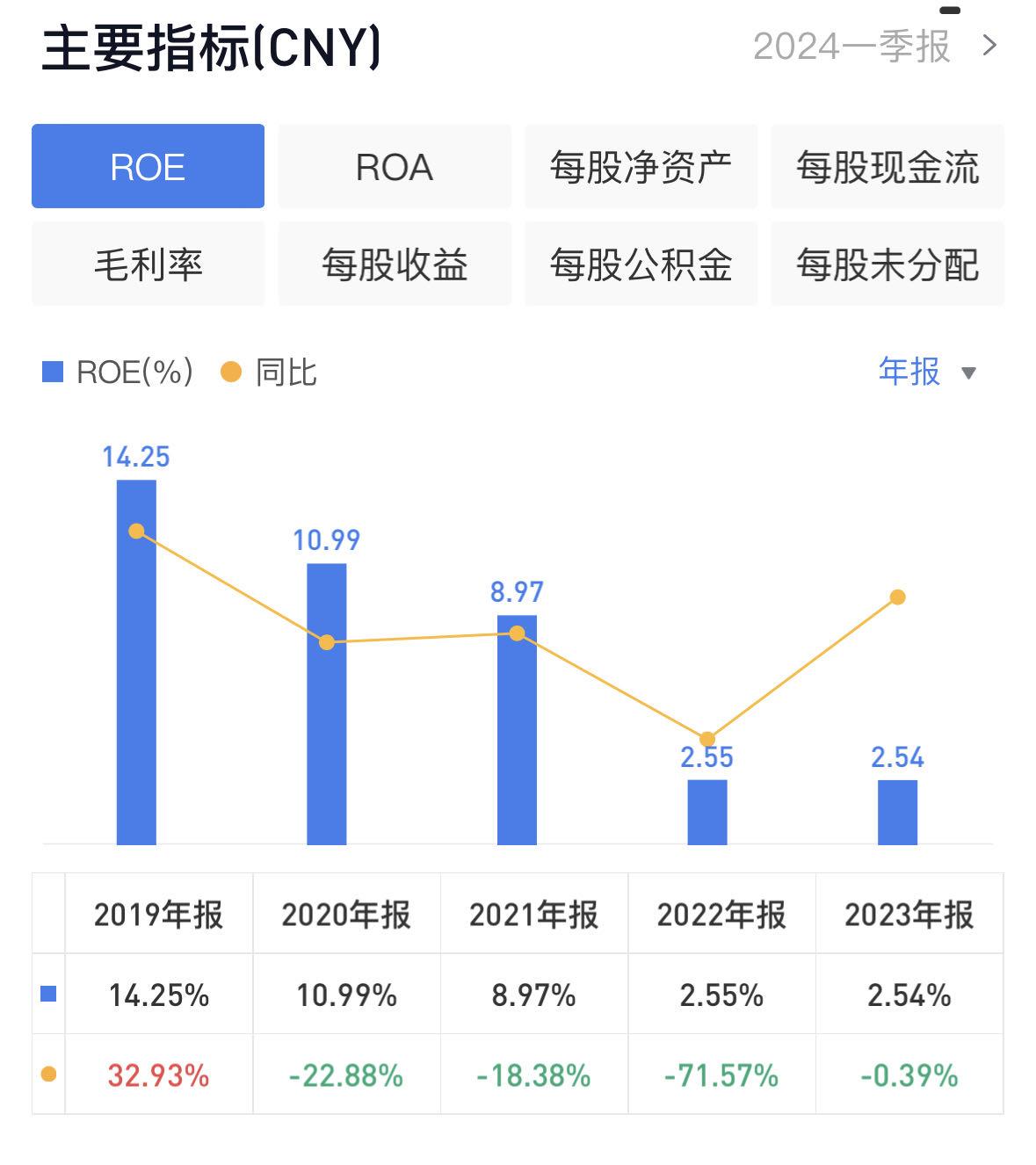ROE方面,德必集团2023年ROE为2.54%,创近五年新低。拉长时间线来看,2019年-2022年,其ROE分别为14.25%、10.99%、8.97%、2.55%。