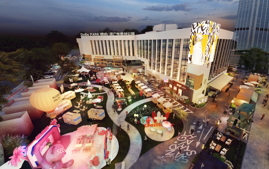 荣获"最佳城市地标综合体奖"的德必?深广电数创公园,位于深圳市罗湖区,由德必集团与深圳广电集团联合改造,前身为“深圳国家动漫画产业基地”,是深圳的文化地标之一。项目以“岭南建筑”风貌为基底,打造“城市绿洲”户外空间,包含日光草坪、音乐旱喷、公共休闲树屋等场景节点,构建微度假目的地。