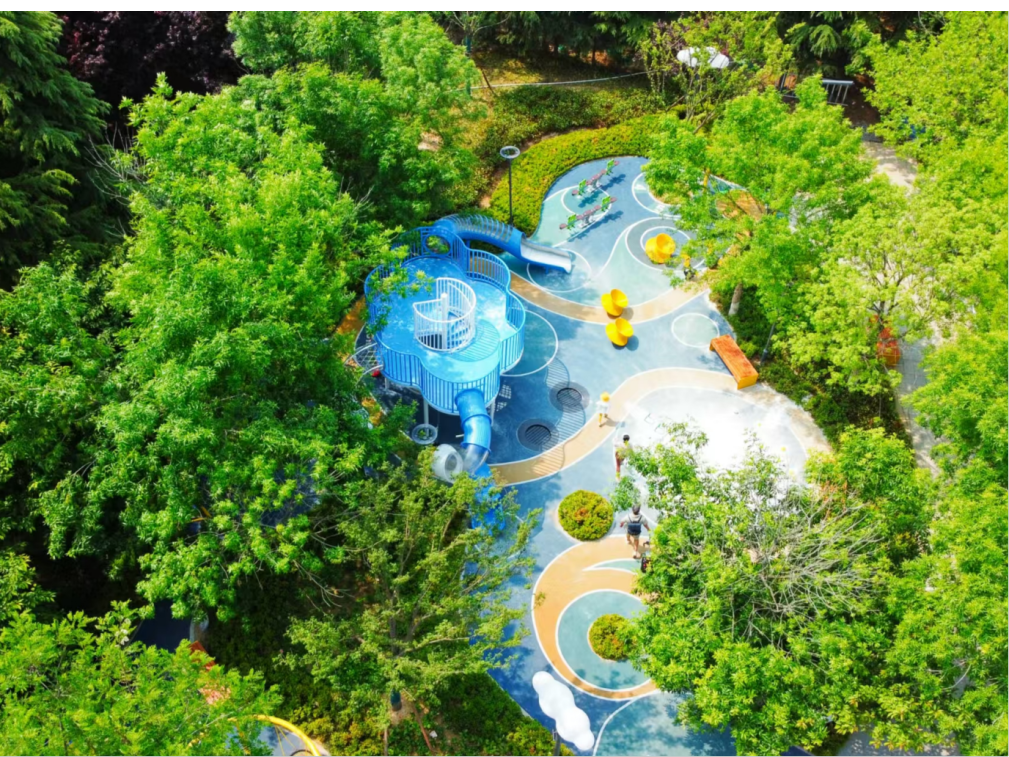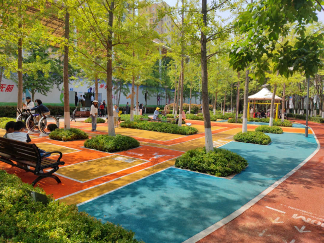 在深圳路体育公园一期提升工程中,冠中生态充分考虑公园周边居民的需求和公园的实际情况,以绿化为基调、运动为特色,对公园进行了全面升级。健身器材、儿童游乐设施、适老化设施等被有机嵌入公园,进一步拓展了公园功能。同时,创新性地引入新型科技设施,打造智慧生态公园,满足市民多样化的健身需求,有效提升了周边居民的生活品质。