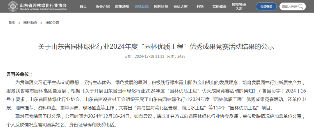 近日,山东省园林绿化行业2024年度“园林优质工程”优秀成果竞赛获奖名单揭晓。冠中生态承建参建的市北区浮山防火通道(绿道)改造提升项目、深圳路体育公园一期提升工程与市北区浮山绿道节点精品提升项目(二期)荣获“园林优质工程”二等奖。此次,我省共36个项目获此殊荣。