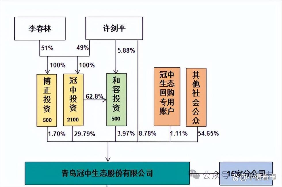 从股权结构看,青岛冠中投资集团有限公司持有冠中生态29.79%股权,实际控制人李春林和许剑平夫妇合计控制公司44.24%的股权。