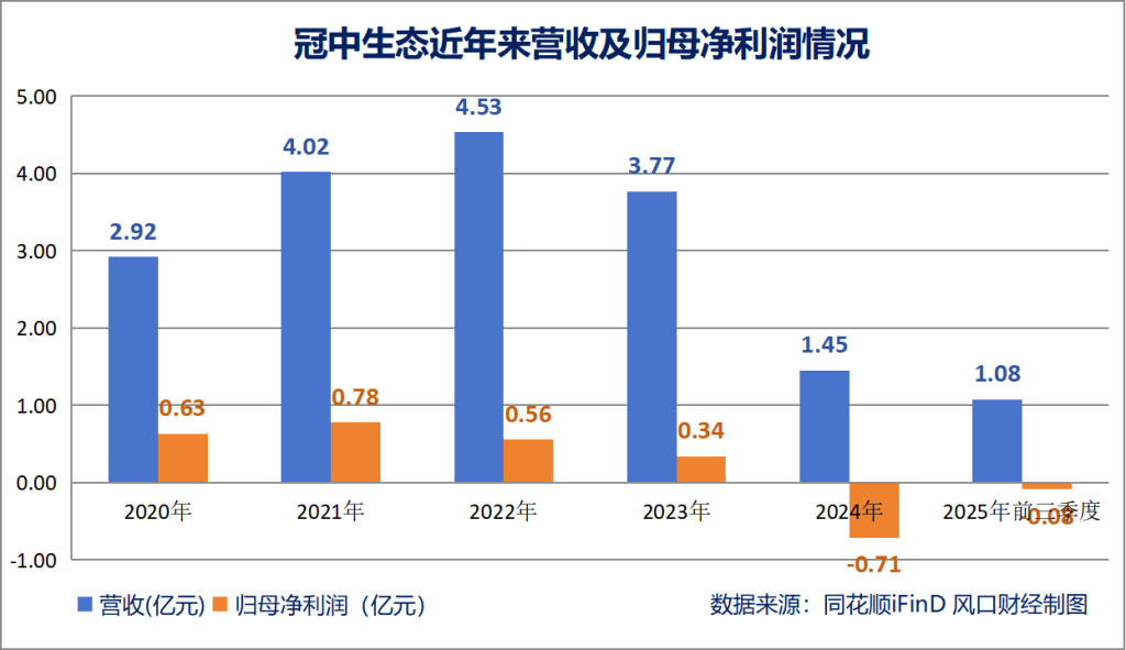 冠中生态 主要从事生态环境建设业务,具体包括以植被恢复为主的生态修复业务以及部分园林绿化和市政公用等城市环境建设业务,属于“生态保护与环境治理行业”。然而,公司近年来的业绩表现却不尽如人意,业绩连续下滑,并在2024年出现了亏损。