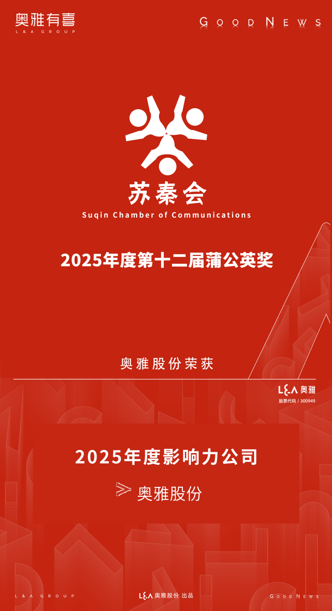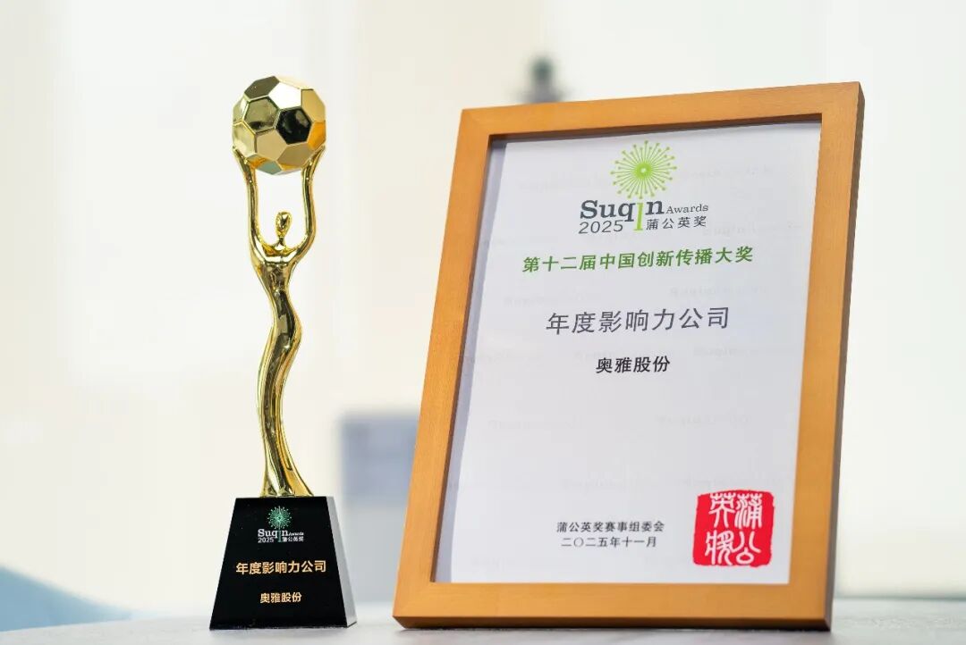 近日,由中国创新传播行业商会“苏秦会”主办的蒲公英2025盛典圆满落幕,“2025第十二届蒲公英奖”正式揭晓。奥雅股份(股票代码:300949)凭借在创意设计、城市更新、亲子文旅等领域的持续创新与品牌传播力,从众多参评企业中脱颖而出,成功斩获“2025年度影响力公司”殊荣。