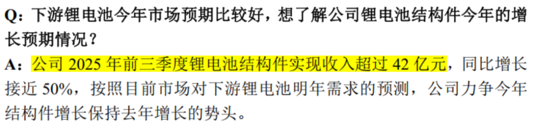 2025年前三季度,其锂电池结构件营收同比高增近50%,产能利用率高达92.73%,相较上年全年提升20个百分点。