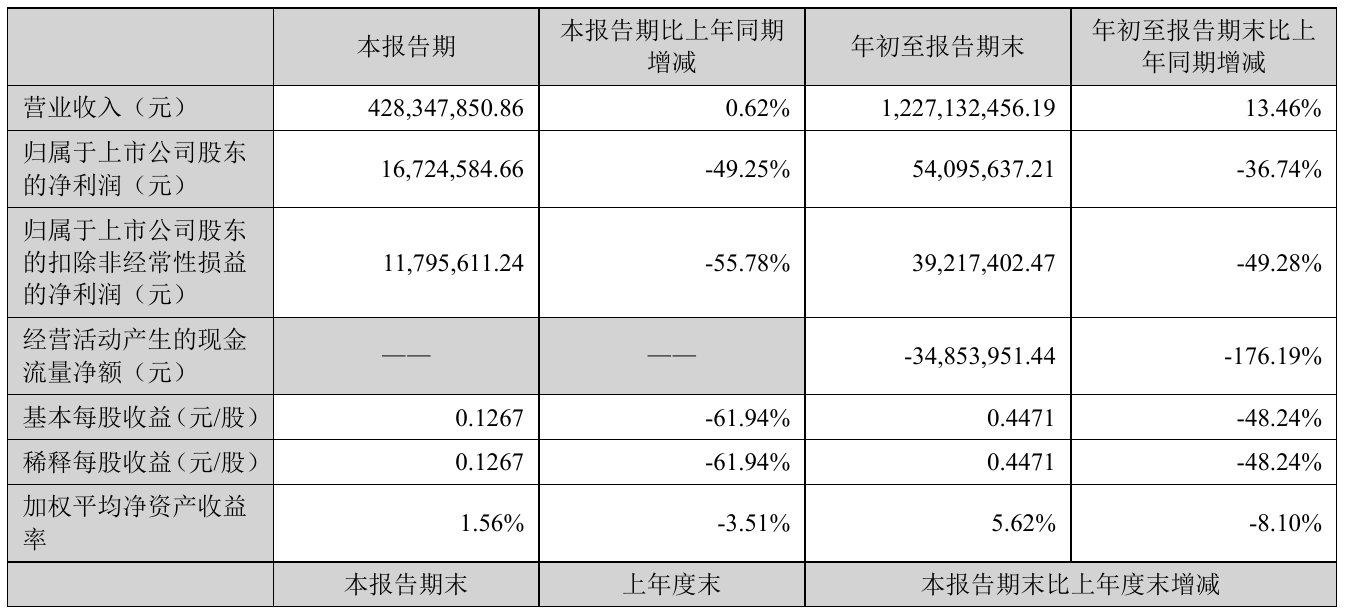 挖贝网10月25日,英力股份(300956)近日发布2021年前三季度报告,报告期内营业收入1,227,132,456.19元,同比增加13.46%;净利54,095,637.21元,同比净利减少36.74%。