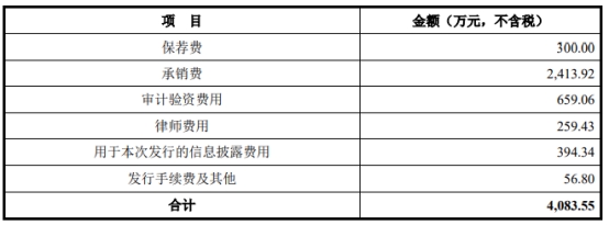英力股份本次上市发行费用为4,083.55万元,其中,长江证券承销保荐有限公司获得保荐费300.00万元,承销费2,413.92万元。