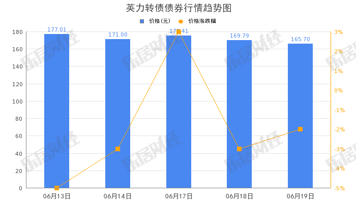乐居财经 06月20日,“英力转债”(123153)下午盘拉低,截至15:12,跌幅10.38%,报148.50元。总成交量162.46万手,成交额25.54亿元。