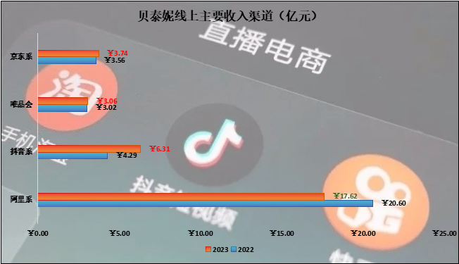但是从线上主要平台销售数据上看,作为主要线上阵地的“阿里系”创收能力下降14.46%,而“抖音系”却大幅增长47.14%。