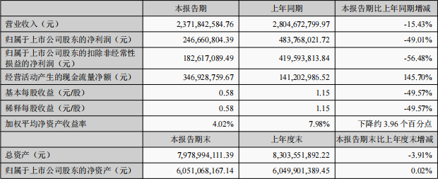研发方面,上半年研发投入为1.16亿元,同比减少8.69%。报告期内,根据年度预算规划,研发费用支出较上年同期略有下降。