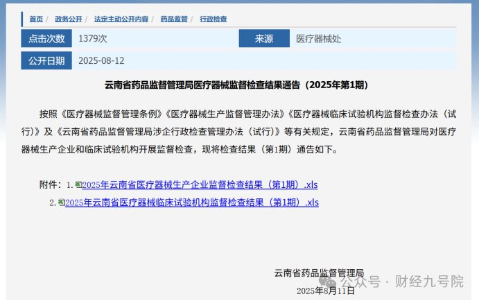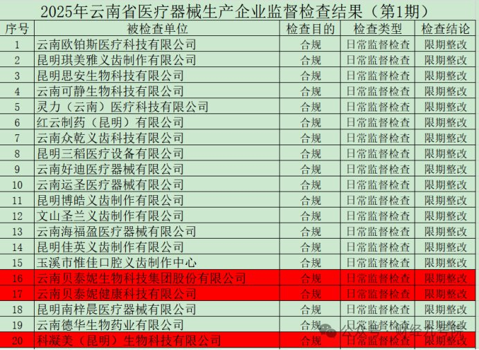 近日,在云南省药品监督管理局发布的2025年第1期医疗器械检查结果通告中显示,上市公司云南贝泰妮生物科技集团股份有限公司(以下简称贝泰妮)及其旗下两家全资子公司在这轮检查中被责令限期整改。