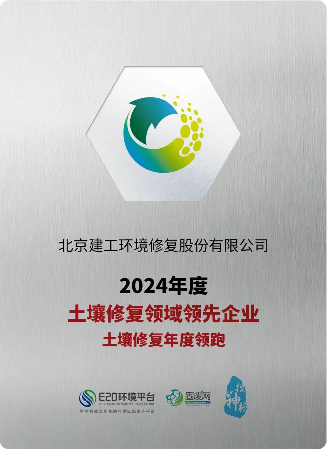 12月19-20日,“2024(第十八届)固废战略论坛”在北京举行,会上隆重揭晓“2024年度土壤修复领域领先企业”等奖项的评选榜单,建工修复再次荣获“2024年度土壤修复年度领跑企业”称号。