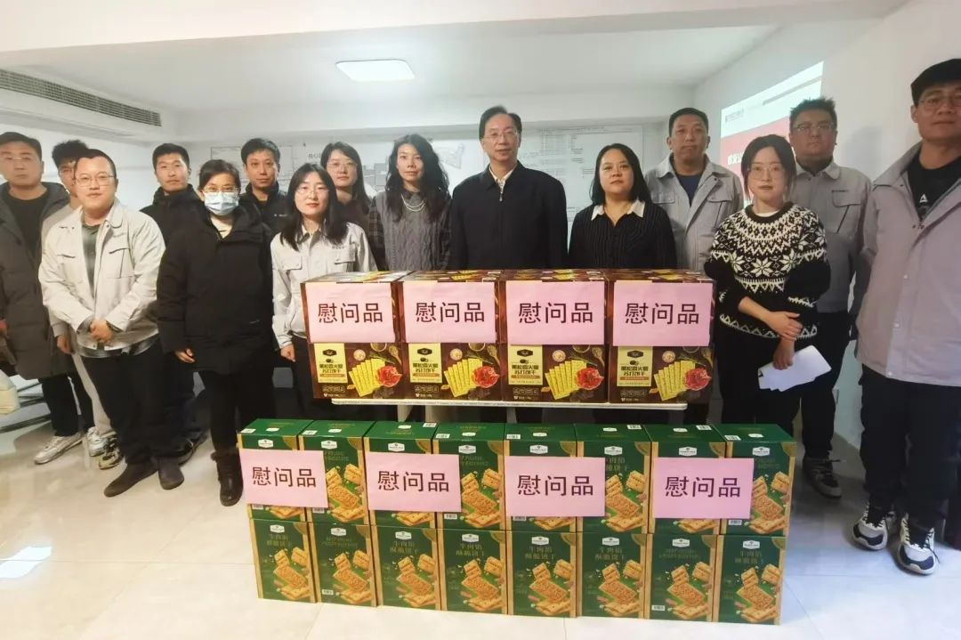 公司领导将牛奶、坚果、熟食等慰问品送到了职工的手上,并对坚守工作岗位的一线职工表达了真切的关怀和诚挚的感谢。