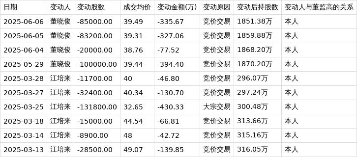 深交所公开信息显示,6月6日,本川智能董事董晓俊在竞价交易公司股票,减持股数8.50万股,成交均价39.49元,变动金额335.67万元,变动后持股数为1851.38万股。