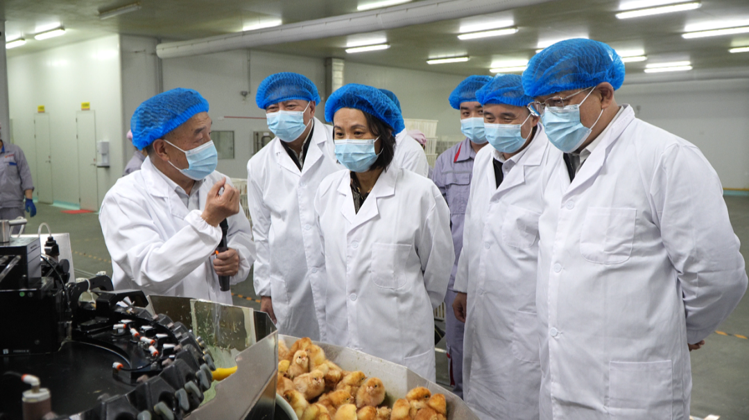 黄艳一行实地参观了晓鸣股份闽宁孵化厅,详细了解企业的生产运营情况。期间,魏晓明董事长就企业基本情况、产业布局及未来发展思路进行了详细汇报。调研组一行着重对晓鸣股份非笼养鸡蛋发展情况进行了深入了解。