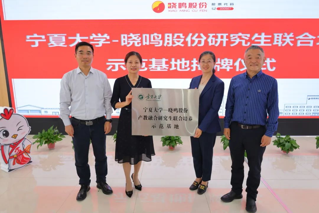 多年来,晓鸣股份与宁夏大学不断探索创新校企合作模式,此次示范基地的成功授牌,更是深化产学研协同创新的里程碑式成果。未来,晓鸣股份将继续与宁夏大学紧密携手,在人才联合培养、科研协同攻关等方面,积极探索“产教融合、科教融汇、产业导向、协同育人”的创新模式,构建人才培养、技术创新、产业发展的良性循环生态,为企业人才引育提供稳定渠道,为行业高质量发展贡献更多力量。