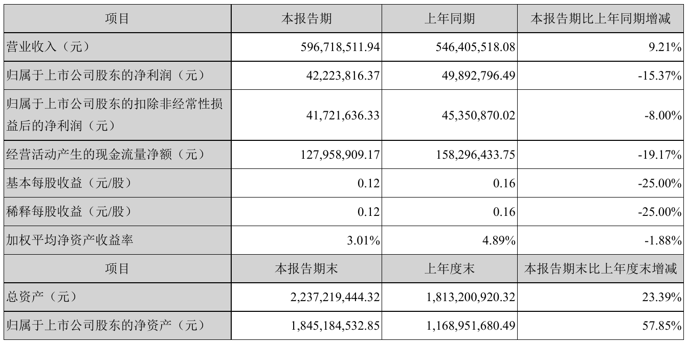 8月25日,格林精密(300968)近日发布2021年半年度报告,报告期内营业收入596,718,511.94元,同比增加9.21%;净利42,223,816.37元,同比净利减少15.37%。