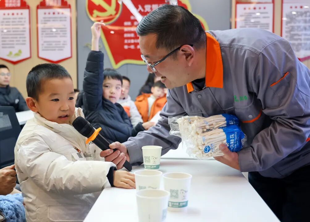 座谈会上,主持人以“蘑菇的荣耀”为主线,通过“一朵菌菇的营养密码”“工厂化种植的科技 革命 ”等生动设问,串联起从党建理念到产业创新的深度对话。现场参与踊跃,趣味问答不仅揭开了菌菇生长的奥秘,更将专业种植知识转化为大众语言。这场交流如同一座桥梁,让研学之旅既成为通向菌菇世界的科普之路,也化为连接产业与生活的幸福之路。