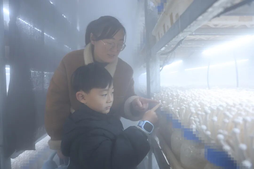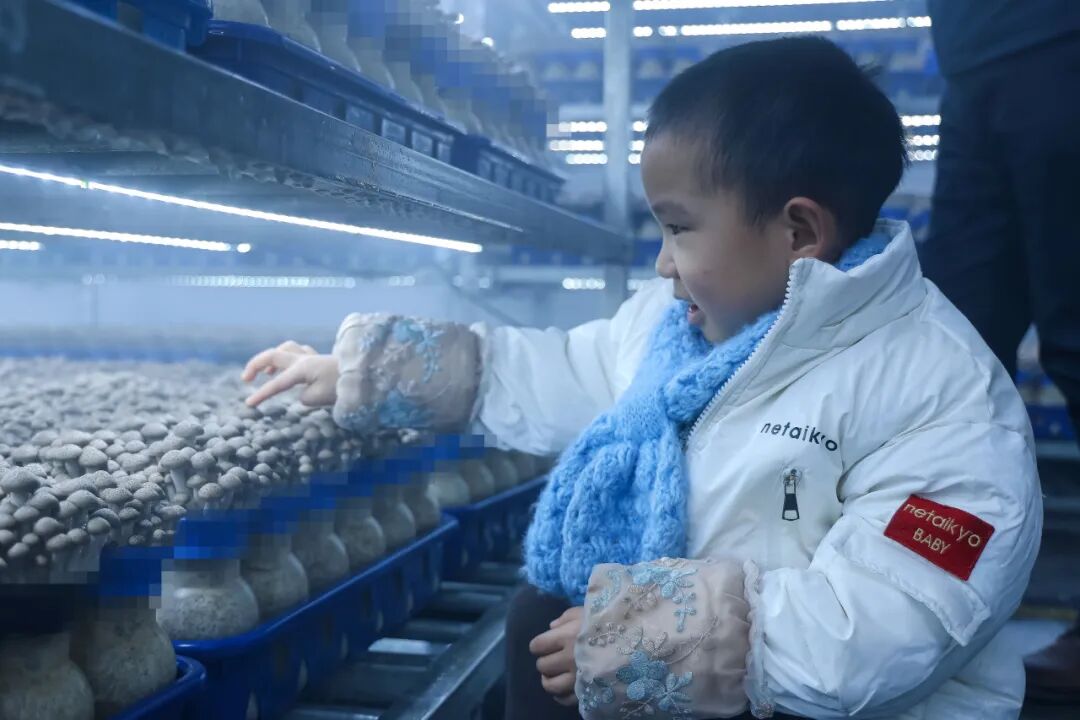 走进云雾缭绕的菌菇生育室,犹如一座“智慧城堡”。技术人员轻触屏幕,精准调控温光水气,为蘑菇定制生长节律。孩子们睁大眼睛惊叹:“蘑菇原来是住在科技房里啊!”稚嫩的想象与严谨的科学在此相遇。众人感慨:“这彻底颠覆了传统农业认知,华绿用科技重新定义传统种植,展现出真正的新质生产力量。”