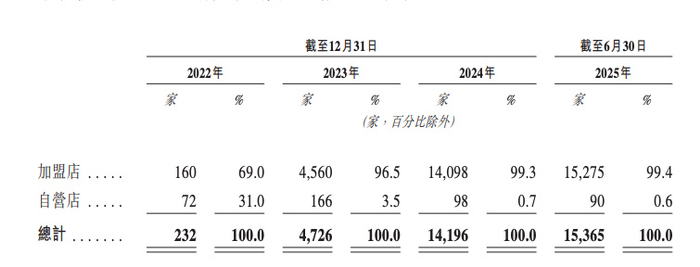 2022年、2023年、2024年、2025年上半年公司关闭的加盟店数量分别为3家、75家、208家、290家。2025年上半年关闭加盟店数量已超过去三年总和。