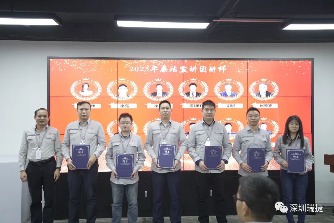 依照员工推荐及调研反馈,此次会议聘任12位同事担任深圳瑞捷2023年度“廉洁宣讲团”特聘讲师,为全体员工进行廉洁宣讲与分享。