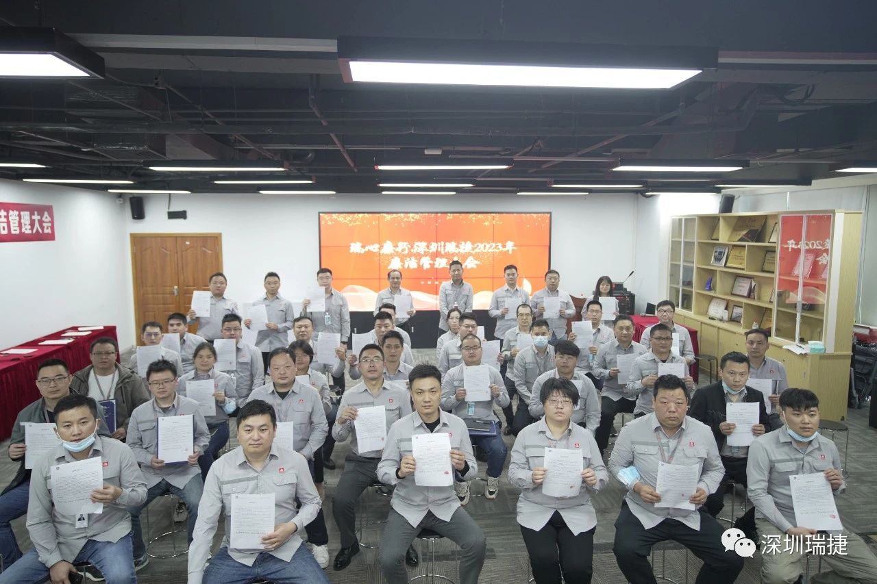 为有效加强公司廉洁管理,切实落实廉洁管理职责,坚守廉洁初心,并为广大客户提供客观、公正、专业、高品质的服务,2023年2月15日,深圳瑞捷在集团总部召开了“瑞心廉行·深圳瑞捷2023年廉洁管理大会暨公司级《军令状》签署仪式”,会议采取线上及线下两个会场同时进行方式,全体高管、部分中层管理人员,以及业务核心骨干人员合计263人参与此次大会。