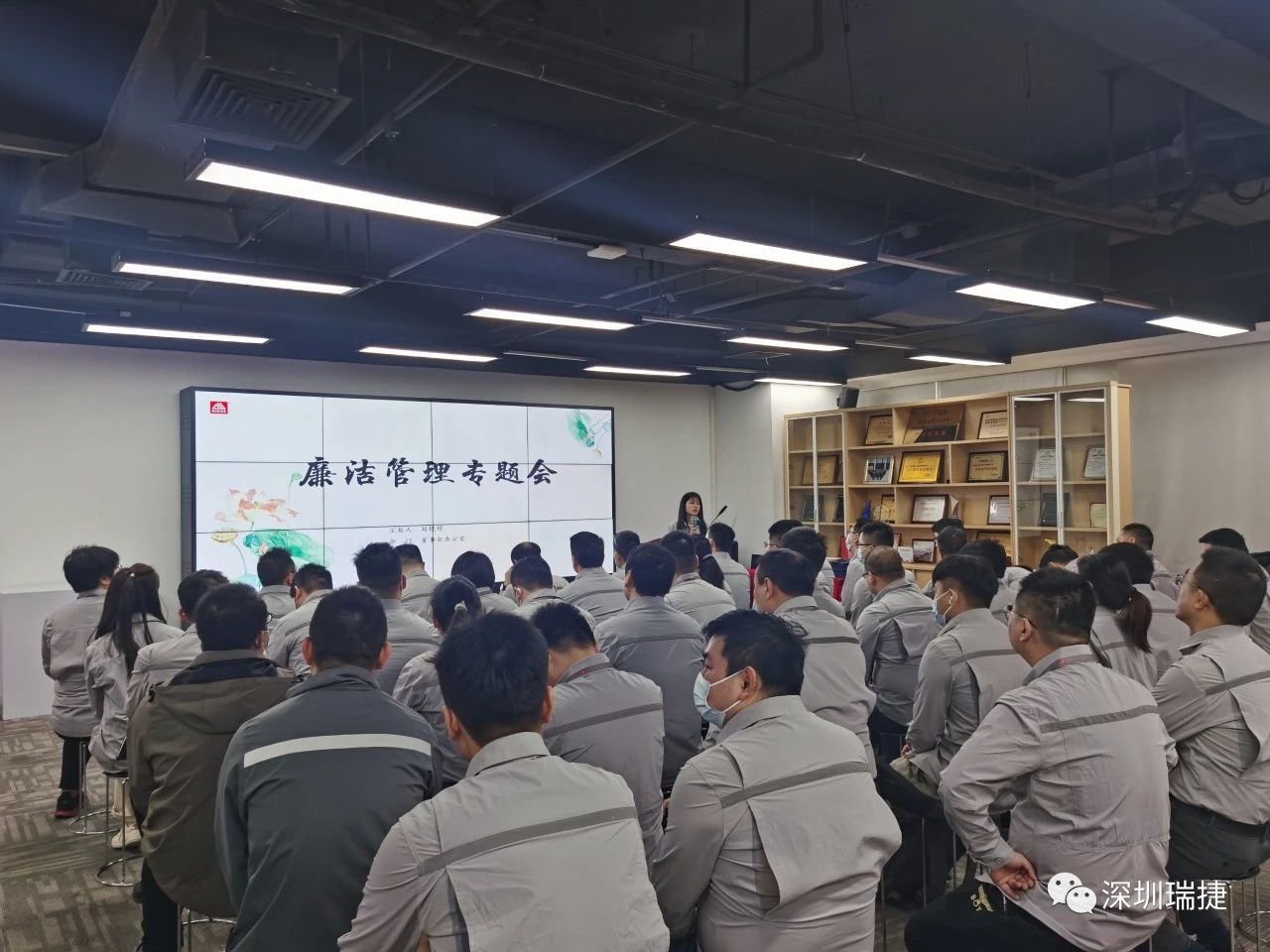 本次廉洁大会主要分五项议程,廉洁宣讲全覆盖、多角度,让廉洁理念深入人心,提升瑞捷人廉洁管理意识及拒腐防变能力。
