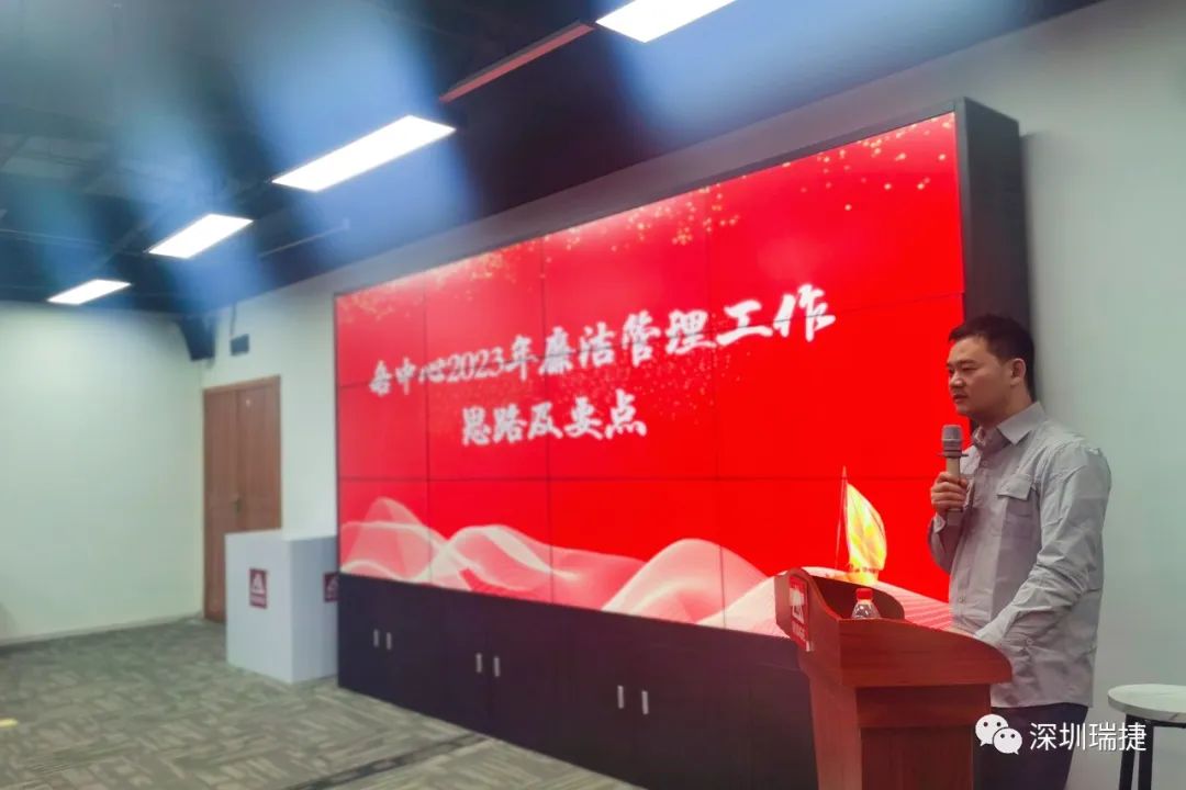 深圳瑞捷地产事业中心、公共事业中心、瑞生子公司、捷安子公司等各承接了集团“反舞弊反贿赂第一道防线”的各一级部门负责人在会上就所属中心/子公司2023年廉洁管理工作开展方向、重点计划及本中心/子公司《2023年廉洁管理预防工作计划》设定与优化思路进行了简要介绍,并表示新的一年将继续坚守廉洁红线,坚决履行廉洁管理职责,严格落实各项廉洁管理要求,筑牢“反舞弊反贿赂第一道防线”。