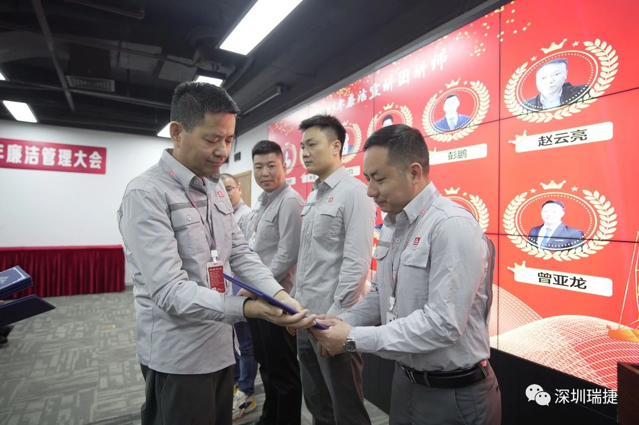 瑞捷始终重视廉洁管理,董事长及总裁严以律己,以身作则,担当瑞捷廉洁代言人,并用语言及行为深度影响每一位瑞捷人。