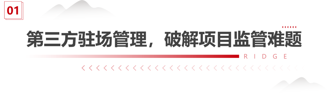 嵌入式常驻工程项目现场。对各项目进行定期巡查、专项巡查,对建设过程进行质量及安全监督管理,及时发现质量、安全管理水平及风险状况,对项目存在的问题及时下发整改通知单。